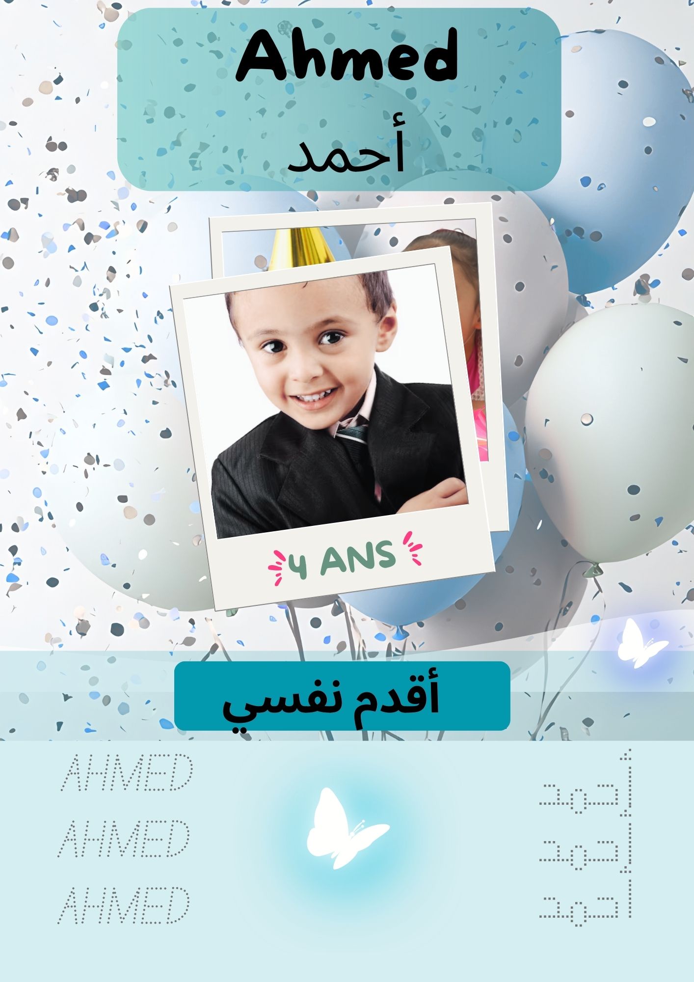 تخيلي فرحة طفلك ودهشته حين يفتح كتابه الأول ليجد اسمه وصورته تزين الغلاف؛ في تلك اللحظة، سيتحول تعلم اللغة الفرنسية من مجرد درس إلى مغامرة ممتعة هو بطلها. بتقديمك هذا الكتاب المخصص، أنتِ لا تمنحينه وسيلة لتعلم الحروف فحسب، بل تهدينه « شعور التميز« الذي سيزيد من تعلقه بالدراسة منذ الصغر